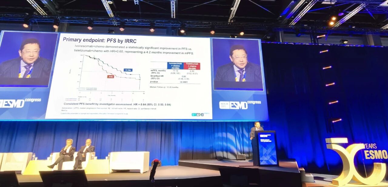 2025年10月19日,康方生物(9926.HK)自主研发的全球首创双特异性抗体新药依沃西(PD-1/VEGF双抗)联合化疗,对比替雷利珠单抗联合化疗一线治疗晚期鳞状非小细胞肺癌(sq-NSCLC)的注册性III期临床研究(AK112-306/HARMONi-6)重磅研究结果,由主要研究者、上海市胸科医院肿瘤科主任陆舜教授在2025年欧洲肿瘤内科学会(ESMO)年会的Presidential Symposium(主席论坛)上重磅发布,现场超过9000名肿瘤领域专家、投资人和产业界人士等共同见证了这一时刻。