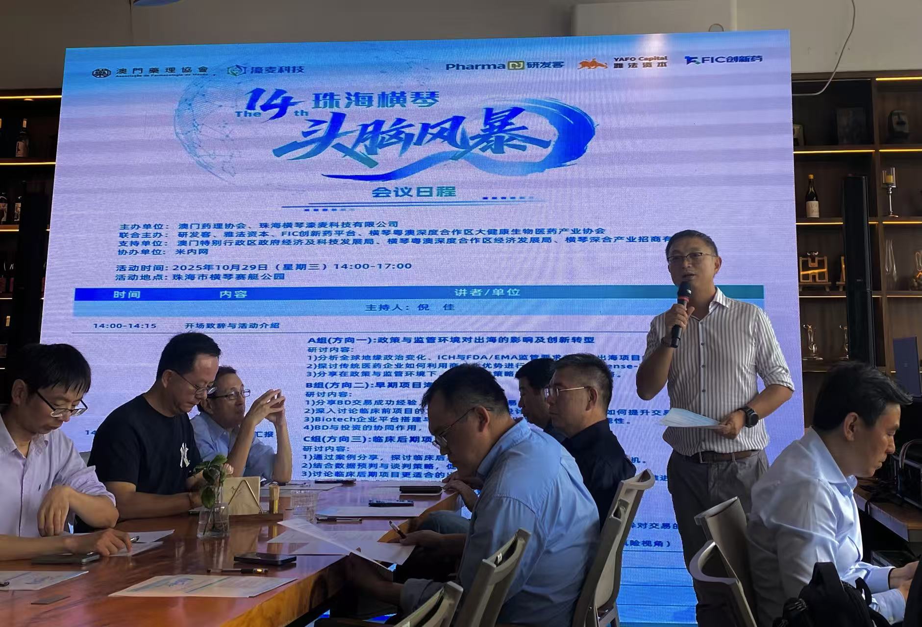 珠海赛艇公园内,智慧如潮涌动,为中国生物医药企业的全球化出海之路注入了新活力。本次活动以“跨越山海:生物医药企业全球化出海的策略升级”为主题,吸引了众多生物医药领域的企业参加。自2023年10月由濠麦科技携手研发客及横琴粤澳深度合作区大健康生物医药产业协会共同发起以来,“头脑风暴”活动已成为连接行业专家、促进交流与创新思维碰撞的平台。本次活动还特邀FIC创新药平台参与支持。