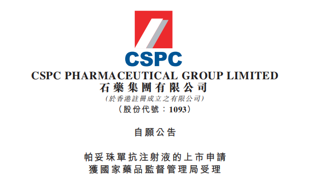 11月12日,石药集团(1093.HK)宣布,本公司附属公司石药集团巨石生物制药有限公司开发的帕妥珠单抗注射液(下称:该产品)的上市申请已获中华人民共和国国家药品监督管理局受理。该产品按照治疗用生物制品3.3类申报,其适应症为HER2阳性乳腺癌。