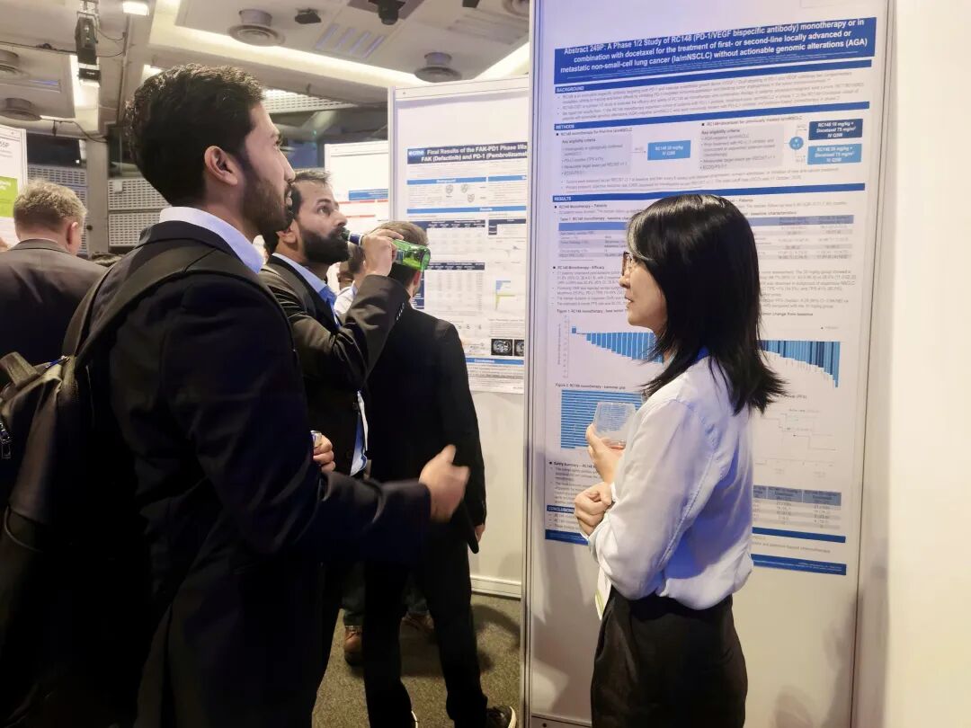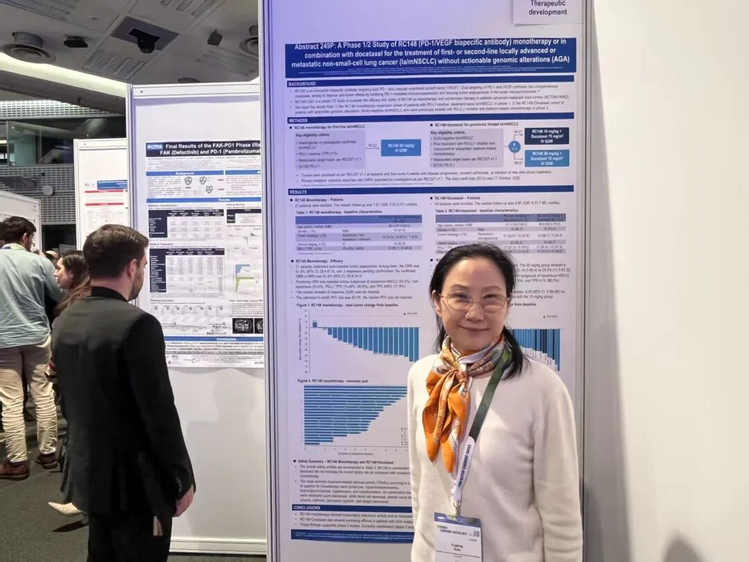 本次壁报展示的是一项在中国开展的多中心、开放性I/II 期临床试验,旨在评估 RC148 单药及联合多西他赛 (docetaxel) 在无驱动基因突变 (AGA) 的晚期/转移性非小细胞肺癌 (la/m NSCLC) 患者中的疗效与安全性,主要终点为客观缓解率(ORR)等。