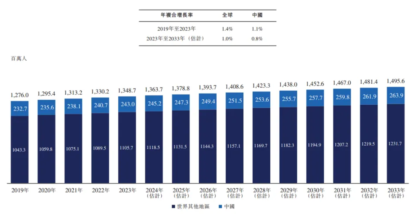 全球及中国过敏性鼻炎患病人数,2019年至2033年(预计)