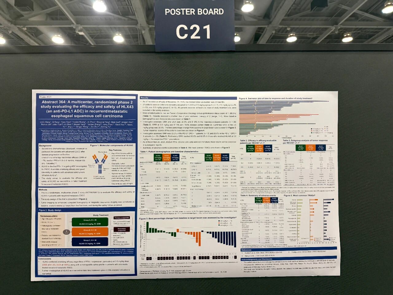 本次发布基于一项评估 HLX43 在复发/转移性食管鳞癌中有效性和安全性的多中心、随机的II 期临床研究。研究入组了经组织学或细胞学确诊的复发/转移性ESCC的患者,接受一线化免治疗后进展或不耐受,并按1:1:1的比例随机分组,接受每3周一次静脉注射2 mg/kg、2.5 mg/kg或3 mg/kg 的HLX43。主要终点为研究者根据RECIST v1.1评估的客观缓解率(ORR)和无进展生存期。次要终点包括其他有效性终点、安全性、药代动力学、免疫原性和生物标志物探索。