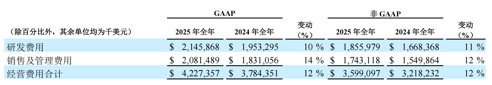 毛利率:2025年第四季度和全年,GAAP下毛利占全球产品收入分别为90.4%和87.3%,上年同期为85.6%和84.3%。经调整后(不包括折旧和摊销),2025年第四季度和全年的全球产品销售毛利率分别增至90.7%和87.8%,而上年同期分别为87.4%和85.5%。