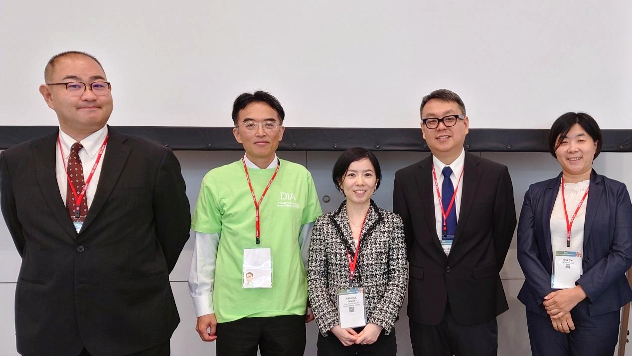The moderator and speakers for the session titled " Delivering Innovative Medicines Faster to Patients in Asia – From Perspective of China-Japan Collaboration in Simultaneous Global Development" on the 22nd DIA Japan Annual Meeting.