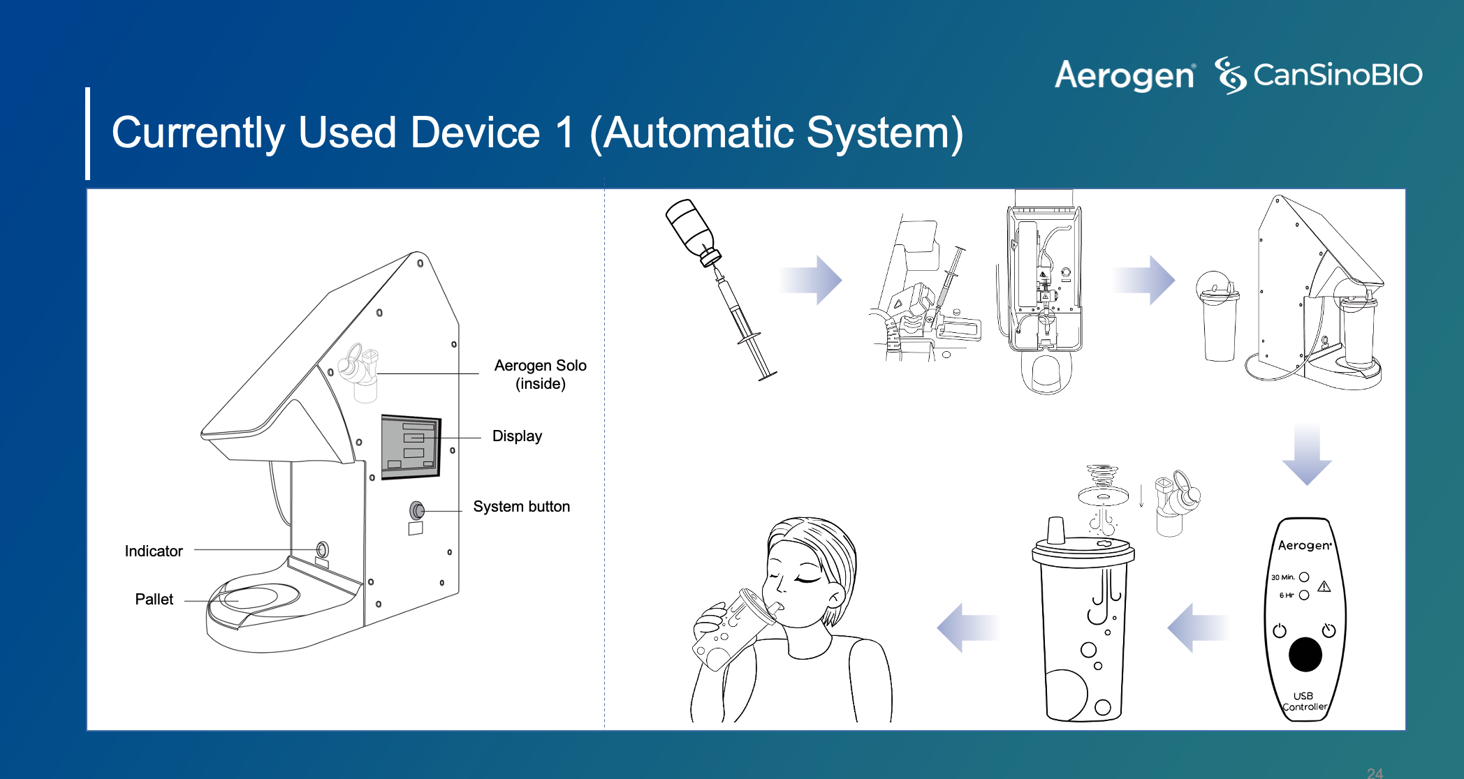 “We use a special nebulizing device from Aerogen to make the vaccine into small droplet like mist and inhale to the lung through the mouth. The entire vaccination process needs to be performed with the assistance of a trained healthcare worker.”
