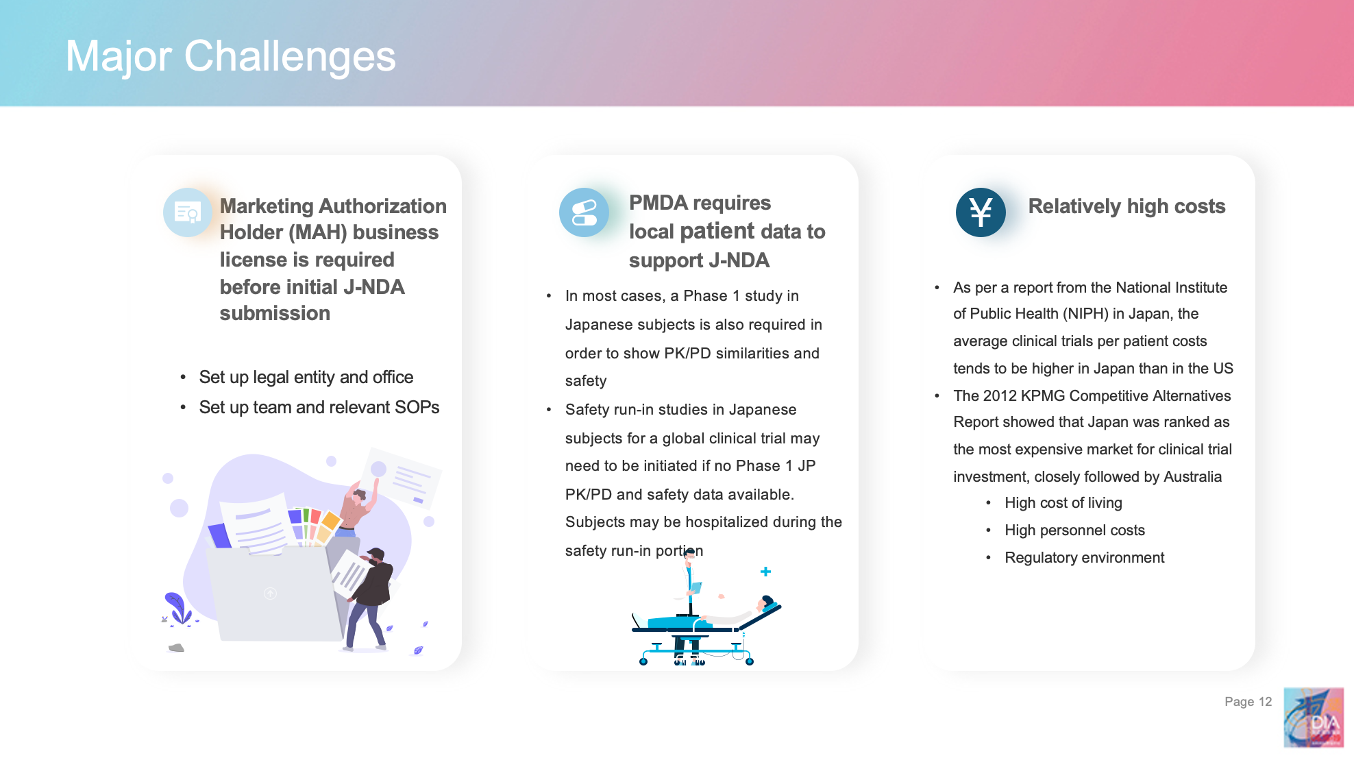 PhIRDAと医薬研発達人で今回実施したアンケートの協力者の一人である日本の九州大学を卒業した海和薬業(Haihe Biopharma)CEO董 瑞平(Ruiping Dong)博士CEOは、PMDAの規制や日本の臨床試験環境を熟知しており、言葉や文化の壁もない。