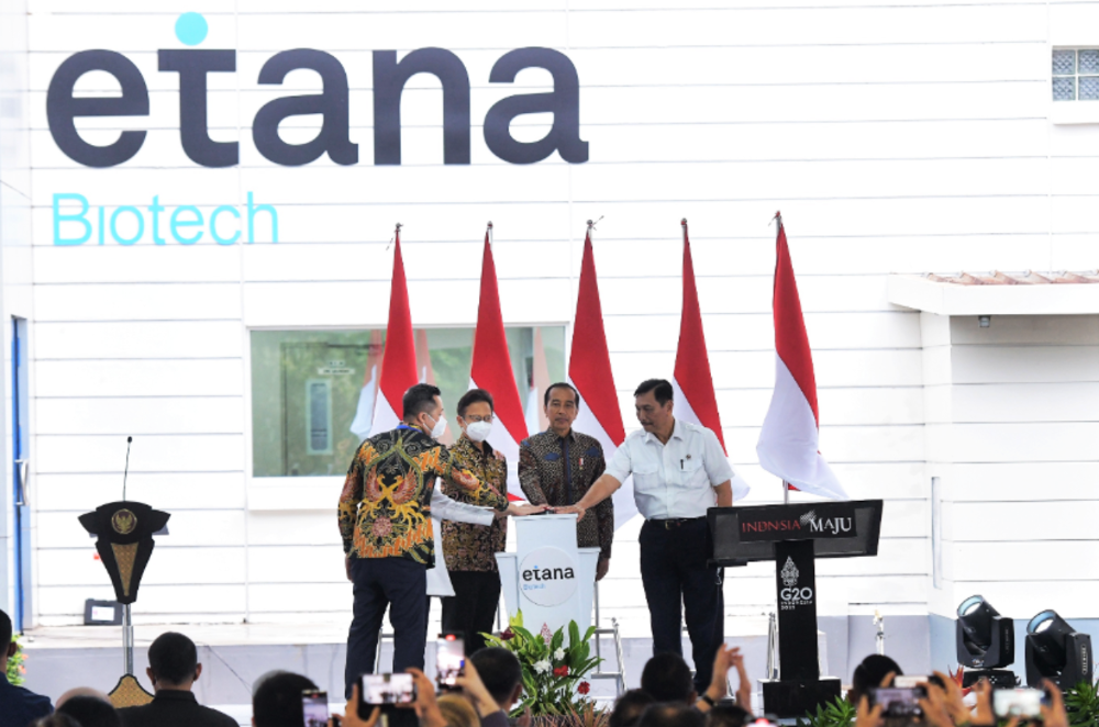 写真はエタナのmRNA生産拠点の除幕式に出席したインドネシアのジョコ・ウィドド大統領(左から3人目)。出典 | Sekretariat Kabinet Republik Indonesiaウェブサイト