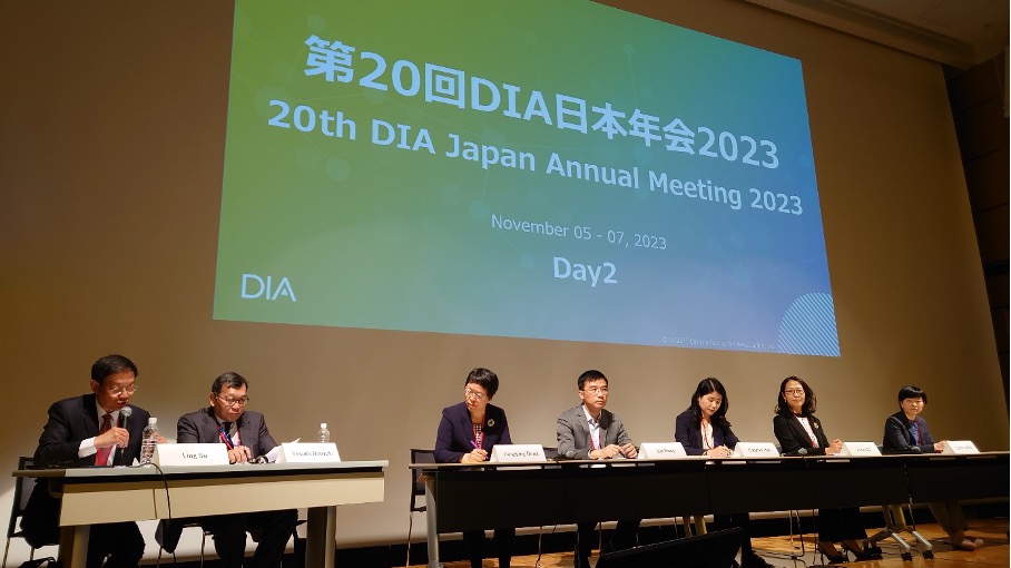 共同座長はPMDAの安田尚之執行役員(国際部門担当)と瀋陽薬科大学の苏岭(SU, Ling)教授。スピーカーはいずれもNMPAからで董江萍(DONG, Jiangping) CCFDIE主任、王骏(WANG, Jun) CDE統計及び臨床薬理学部長、韩聪凡(HAN Congfan) CFDI inspectorの3名。NMPAの3名に加えて産業界からのパネリストはTakeda Greater Chinaの刘艳玮(Joyce LIU, Yanwei) Regulatory Affairs HeadとTigermedのMs. Connie CHENの2名であった。