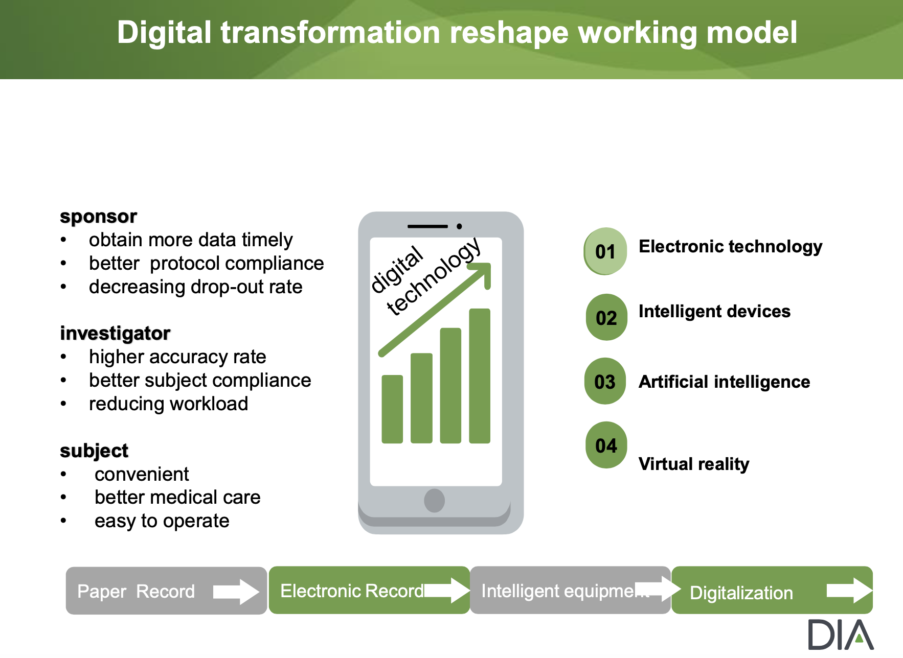 治験における電子記録に続くデジタル化のニーズは、中国においても近年大きく高まっているが、それにより、sponsor, investigator, 被験者の全てに恩恵がもたらされる(4頁)。