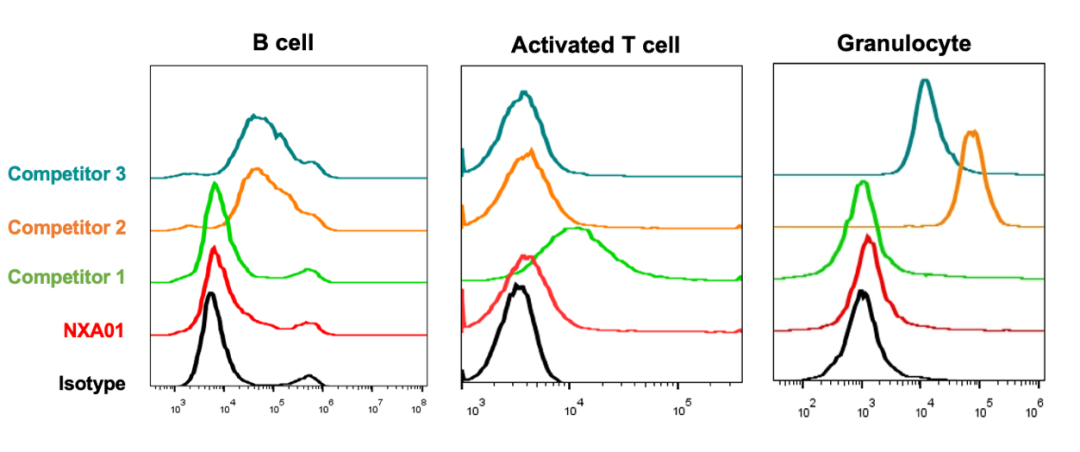 NXA01 did not bind with human B cells, activated T cells or granulocytes in vitro