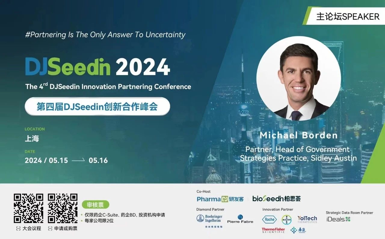 在2024年DJS创新合作峰会中,Sidley Austin合伙人Michael Borden将在大会首日分享“美国对中国生物技术公司的监管阻力”的主题报告。