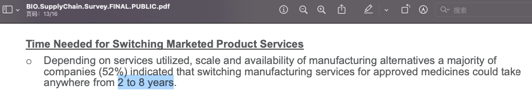 这也说明了将中国CDMO从美国药品供应链中切断将是一个漫长的过程。