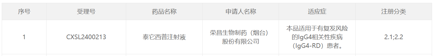 荣昌生物宣布泰它西普一项新适应症获CDE临床试验默示许可