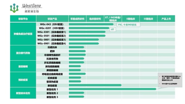 威斯津在mRNA序列、递送系统及规模化生产等关键技术上取得了重大突破,获得了多项国内外专利,布局了涵盖肿瘤治疗性疫苗、代谢性疾病mRNA药物、传染病预防性疫苗及其他治疗性药物的20多个产品管线。