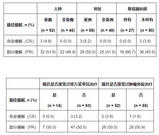 - 经IRC评估的不同亚组最佳ORR,无论人种、地区、基线疾病特征和既往治疗史,均显示良好的抗肿瘤疗效,与全球整体人群最佳ORR获益一致