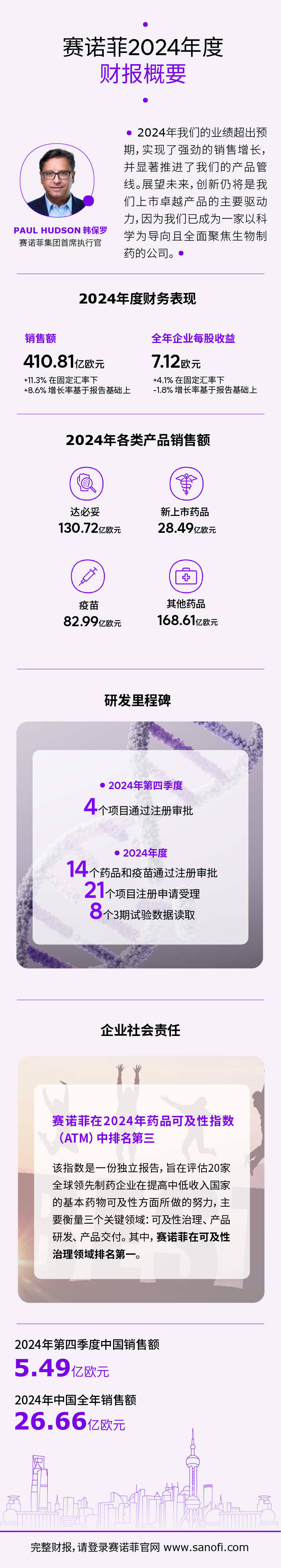 赛诺菲公布2024年度财报,全球实现两位数销售额增长