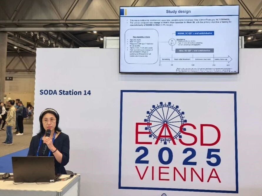 2025 EASD现场图:北京大学人民医院高蕾莉教授就INS068-302研究做口头报告