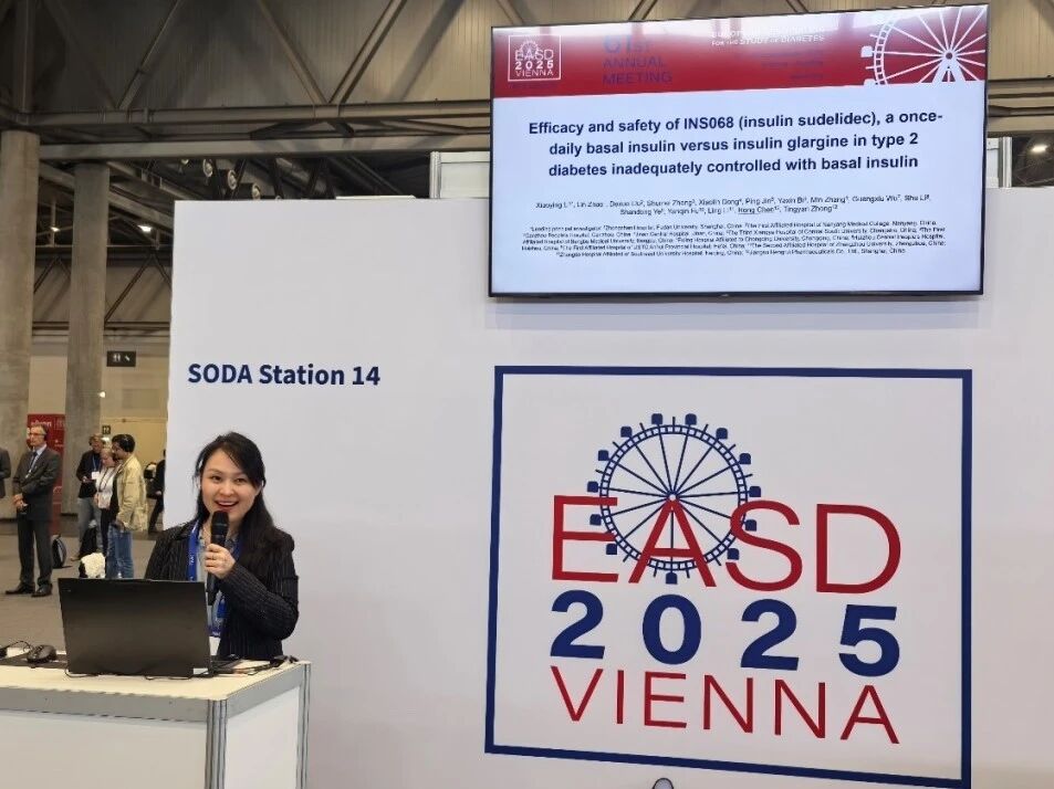 中欧夏令时间(CEST)2025年9月15至19日,第61届欧洲糖尿病研究协会(EASD)年会在奥地利维也纳举办。期间,恒瑞医药自主研发的新型长效胰岛素类似物舒地胰岛素(INS068)治疗成人2型糖尿病(T2DM)患者的两项关键III期临床试验(INS068-301和INS068-302)分别以简单口头报告形式精彩亮相。