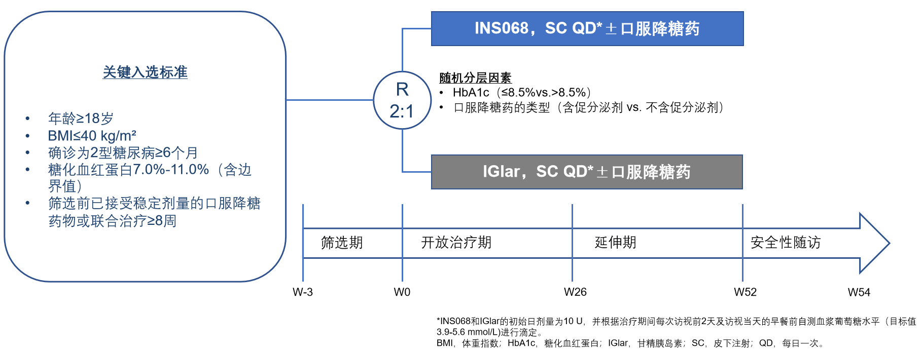 INS068-301研究:舒地胰岛素(INS068)与甘精胰岛素在基础胰岛素控制不佳的T2DM患者中的疗效和安全性比较