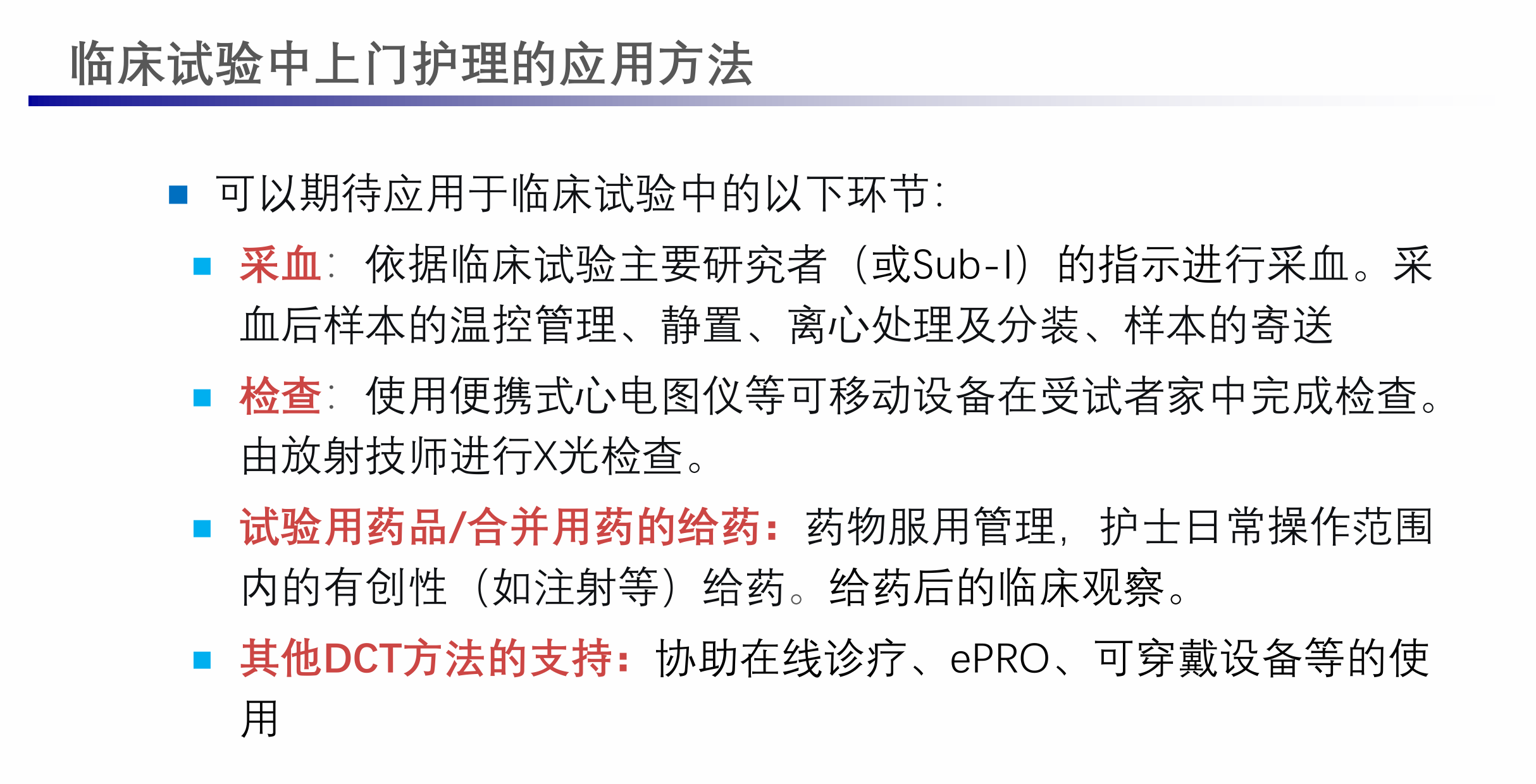 •TransCelerate BioPharma Inc.提出七种DCT方法推动临床试验实施现代化。在日本2020年9月JPMA首次全面介绍DCT。不仅在欧美,在日本也经历了新冠疫情期间,迅速考虑并采纳多种DCT方法。