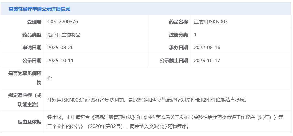 康宁杰瑞的注射用JSKN003获CDE拟纳入突破性治疗品种