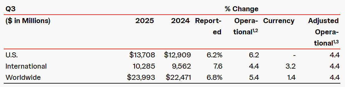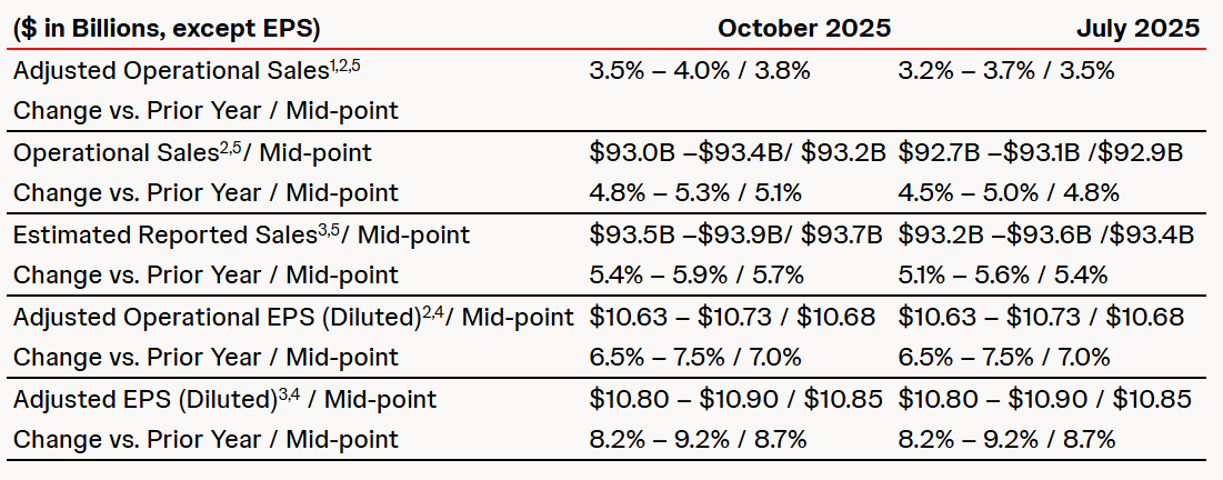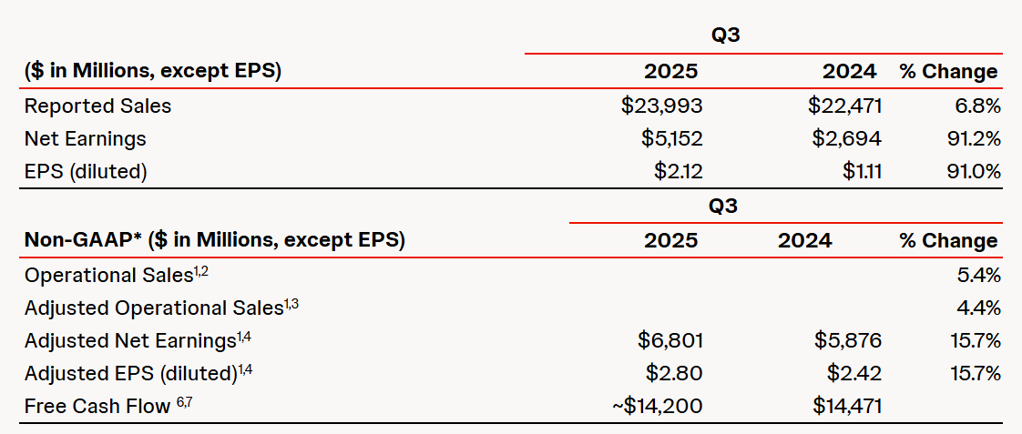 • 2025 Third-Quarter reported sales growth of 6.8% to $24.0 Billion with operational growth of 5.4%* and adjusted operational growth of 4.4%*