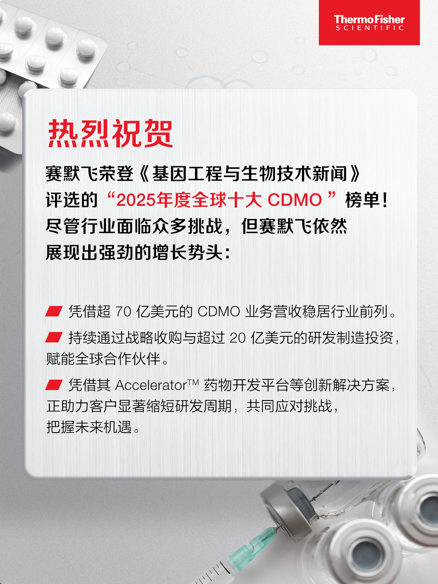 赛默飞入选GEN“2025全球十大CDMO服务商”
