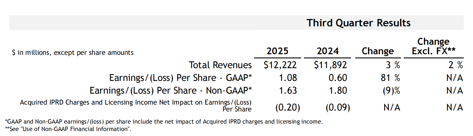 (PRINCETON, N.J., October 30, 2025) – Bristol Myers Squibb (NYSE: BMY) today reports results for the third quarter of 2025.