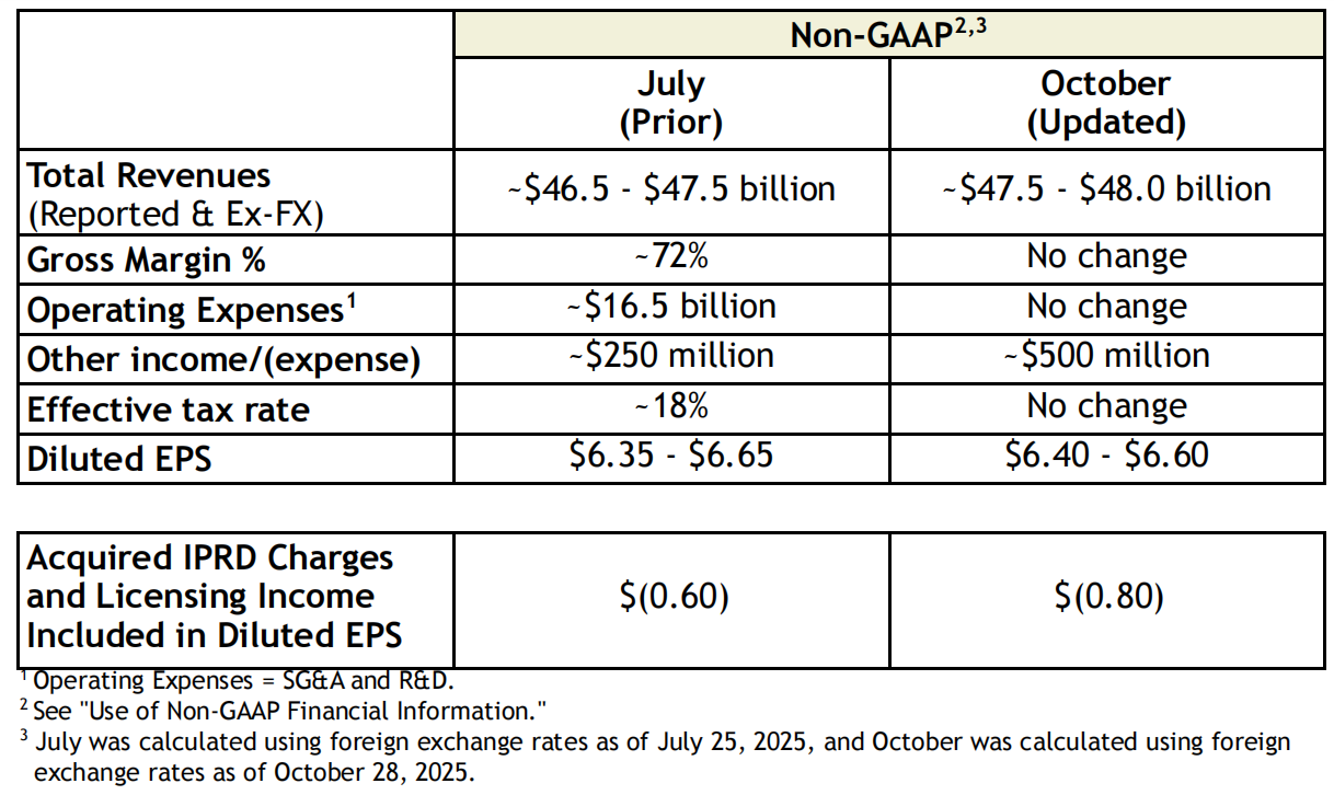 • Raising 2025 revenue guidance to a range of ~$47.5 billion to $48.0 billion; Updating non-GAAP