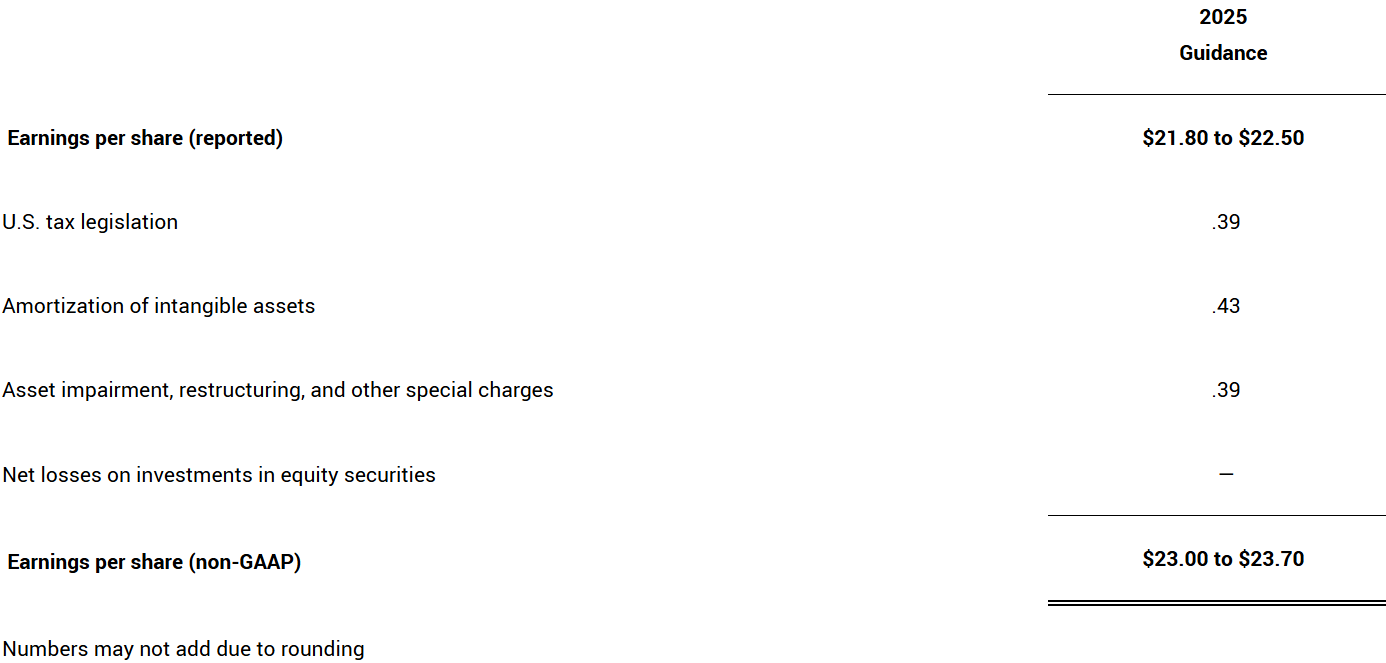 Based on these changes, EPS guidance has been increased to be in the range of $21.80 to $22.50 on a reported basis and $23.00 to $23.70 on a non-GAAP basis. The company's updated 2025 financial guidance reflects adjustments shown in the reconciliation table below.