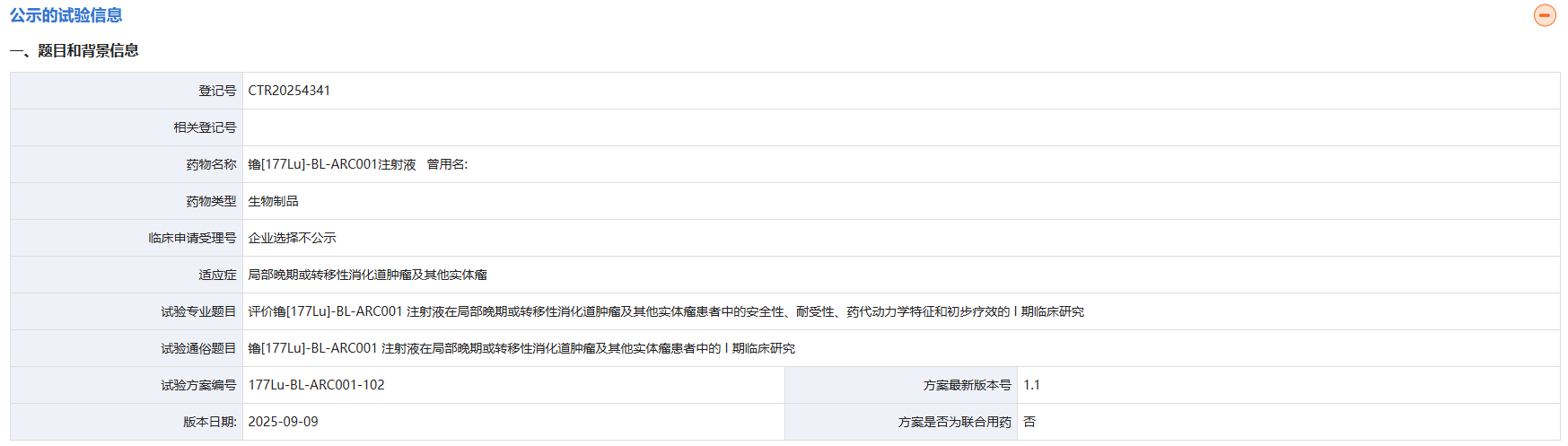 百利天恒启动中镥[177Lu]-BL-ARC001 注射液的 I 期临床研究