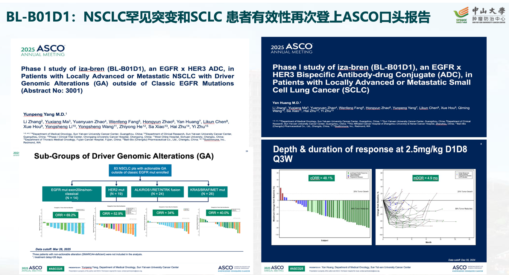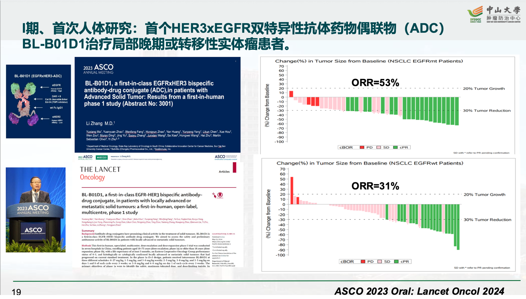 而由张力教授牵头领导的关于BL-B01D1的研究在2023年ASCO年会上获得了口头报告的机会。他向全球展示了该药物在非小细胞肺癌罕见突变和小细胞肺癌患者中的疗效。张力教授说,BL-B01D1作为一种创新的EGFRxHER3双抗ADC,在针对局部晚期或转移性非小细胞肺癌和小细胞肺癌患者的多项临床试验中表现出色。