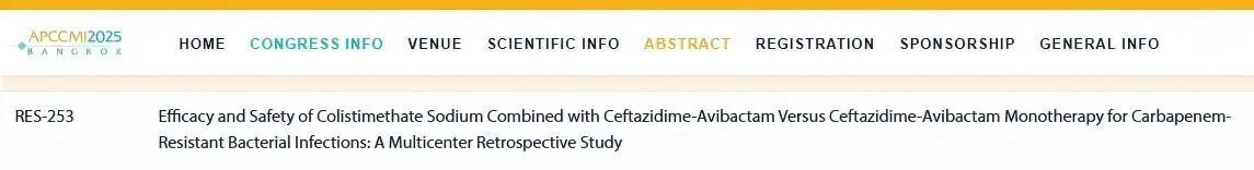 此次入选APCCMI 2025口头报告的研究是一项国内多中心、回顾性、真实世界研究,旨在通过回顾性队列分析,明确CZA+CMS对比CZA单药在CRE/CRPA感染中的疗效与安全性,并探讨患者预后相关的危险因素(如基础疾病、感染部位、耐药基因型),为优化耐药革兰氏阴性菌感染的治疗策略提供循证依据。