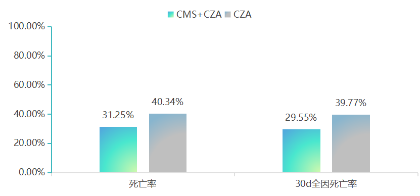 在此背景下,基于协同机制的联合治疗策略,成为突破治疗瓶颈的重要研究方向。理论上,CMS可破坏细菌外膜,帮助CZA更好地渗透到作用靶点,同时双重杀菌机制可以更好地应对细菌耐药突变问题。相关研究[4-6]提示,二者联用能提升对耐药菌株的杀菌效果,进而提升患者的生存率,但这些研究结果仍缺乏大样本对照数据支撑。
