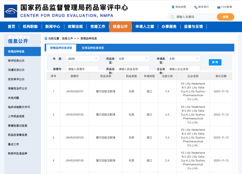 礼来的替尔泊肽新适应症上市申请获CDE受理