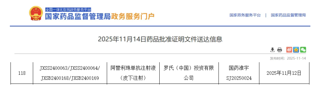 罗氏制药 PD-L1 单抗阿替利珠单抗皮下注射剂在国内获批上市