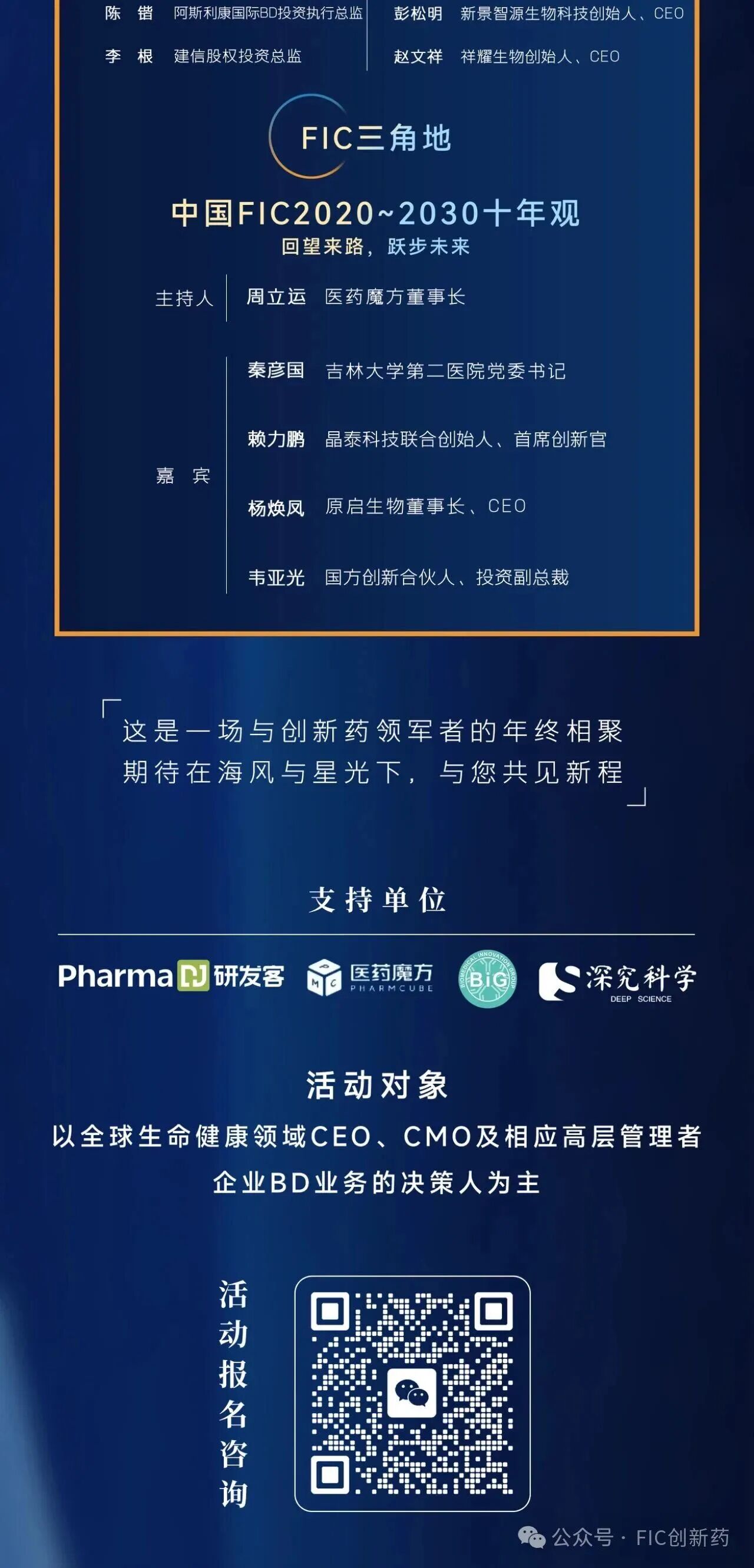 FIC Annual Summit 将在海南召开,本次年度峰会邀请北京大学全球新药研发领军人才项目(北大FIC)专家导师及生态成员齐聚一堂,意在紧扣国家开放前沿,为中国创新药走向全球探索新通路。