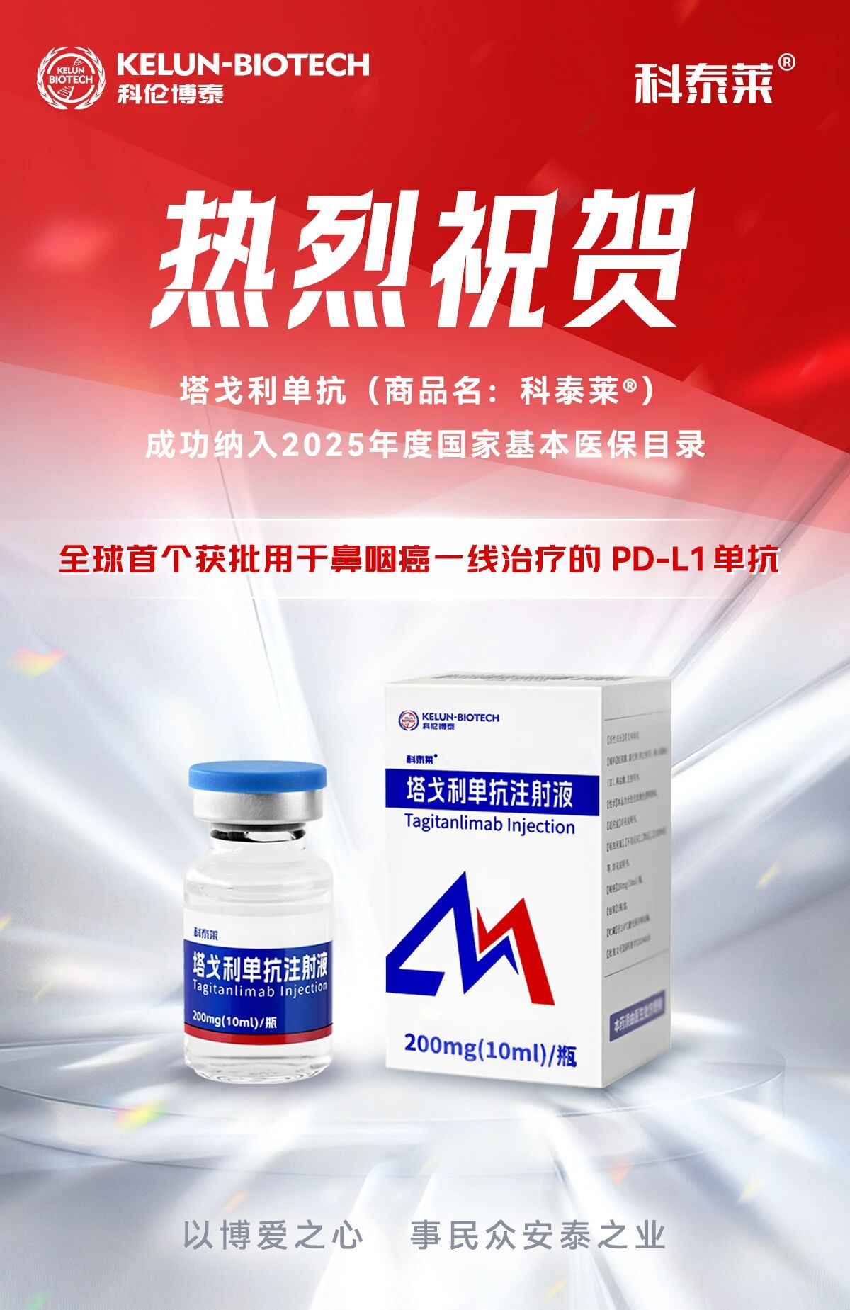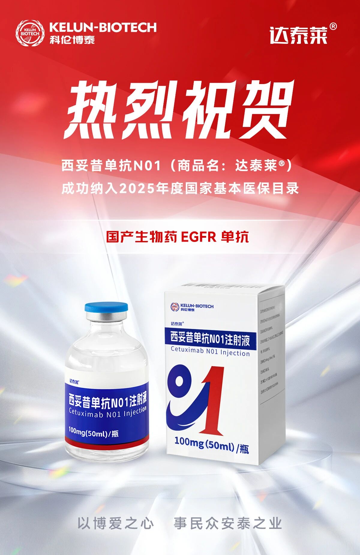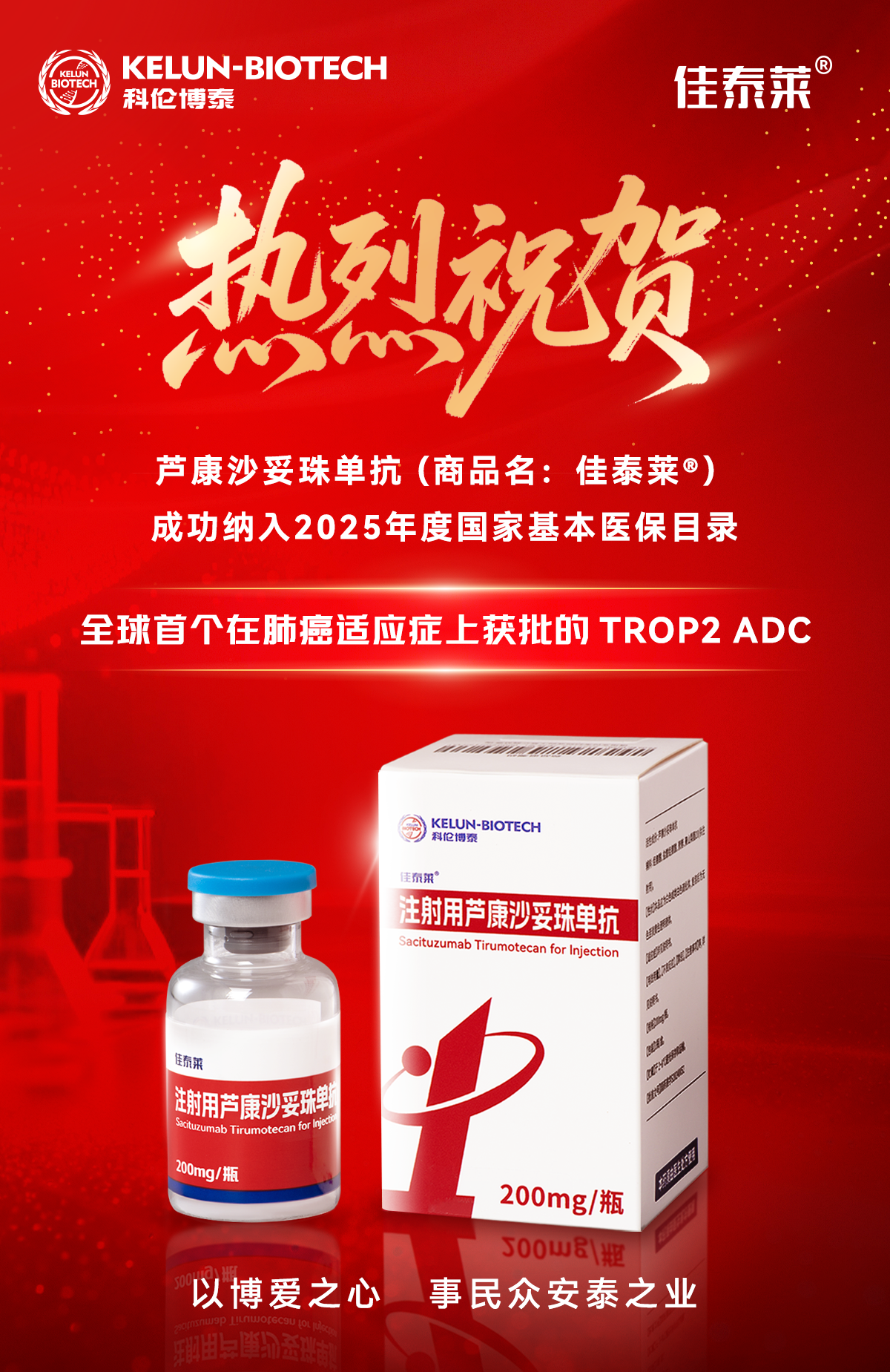 12月7日,国家医疗保障局、人力资源社会保障部公布了《国家基本医疗保险、生育保险和工伤保险药品目录及商业健康保险创新药品目录(2025年)》,科伦博泰三款新药首次成功入选国家基本医保目录,分别是芦康沙妥珠单抗(佳泰莱®)、西妥昔单抗N01(达泰莱®)和塔戈利单抗(科泰莱®)。新版医保目录将于2026年1月1日起正式实施。