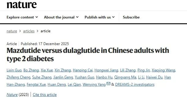 2025年12月18日,美国旧金山和中国苏州——信达生物制药集团(香港联交所股票代码:01801),一家致力于研发、生产和销售肿瘤、自身免疫、代谢及心血管、眼科等重大疾病领域创新药物的生物制药公司,今日宣布:全球首款胰高血糖素(GCG)/胰高血糖素样肽-1(GLP-1)双受体激动剂信尔美®(玛仕度肽注射液),在中国2型糖尿病患者中开展的两项III期临床研究(DREAMS-1、DREAMS-2)结果近日在国际知名学术期刊《自然》(Nature)背靠背以“文章加速预览(Accelerated Article Preview)”形式同步在线发表i,ii。