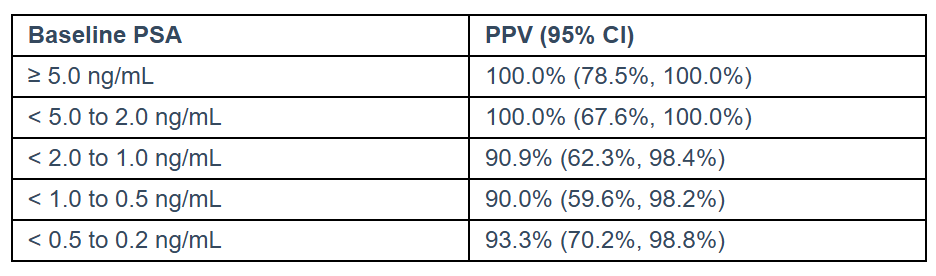 In the study, patients with suspected BCR were stratified into groups according to their baseline prostate specific antigen (PSA) levels. TLX591-CDx PSMA-PET imaging demonstrated high PPV in all patient groups, including at very low baseline PSA levels.