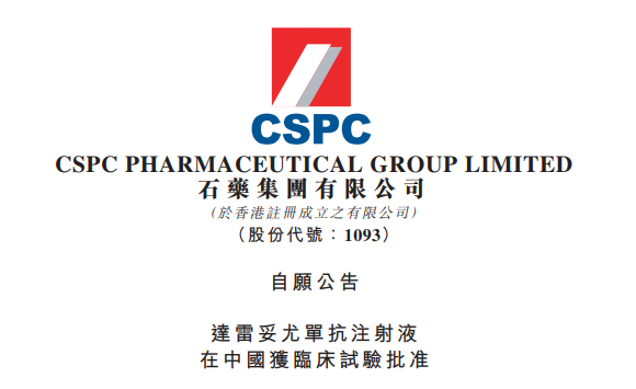 12月23日,石药集团(1093.HK)宣布,本集团开发的达雷妥尤单抗注射液(下称:该产品)已获中华人民共和国国家药品监督管理局批准,可在中国开展临床试验。