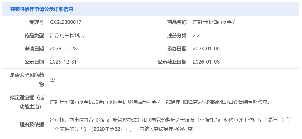 荣昌生物的注射用维迪西妥单抗获CDE拟纳入突破性治疗品种