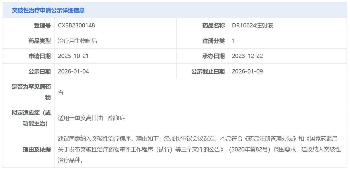 道尔生物的DR10624注射液获CDE拟纳入突破性治疗品种