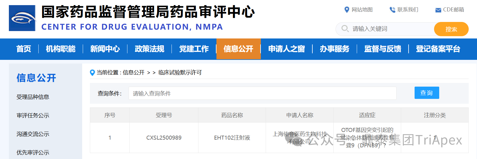 近日,上海佑音医药生物科技有限公司(以下简称“佑音医药”)自主研发的治疗用生物制品 1 类 AAV 载体类基因治疗药物 EHT102 注射液已获国家药品监督管理局药品审评中心(CDE)的新药临床试验(IND)批件(受理号 CXSL2500989),其适应症为 OTOF 基因突变引起的常染色体隐性遗传性耳聋 9(DFNB9)。截至目前,这是国内首个成功获批 IND 的耳科基因治疗药物。作为 EHT102 项目非临床研究工作的主要合作者,鼎泰药研(集团)对此表示衷心的祝贺!