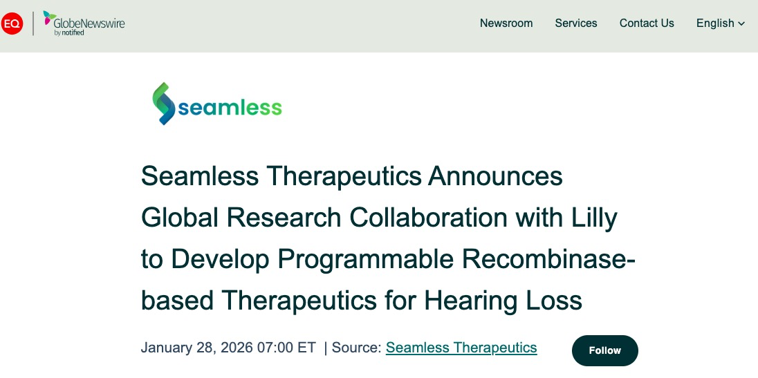 根据协议,Seamless将设计并开发针对特定基因突变的位点特异性重组酶,这些基因与听力损失相关。礼来将获得这些已开发的重组酶的独家许可,用于推进临床前和临床药物的开发及商业化进程。