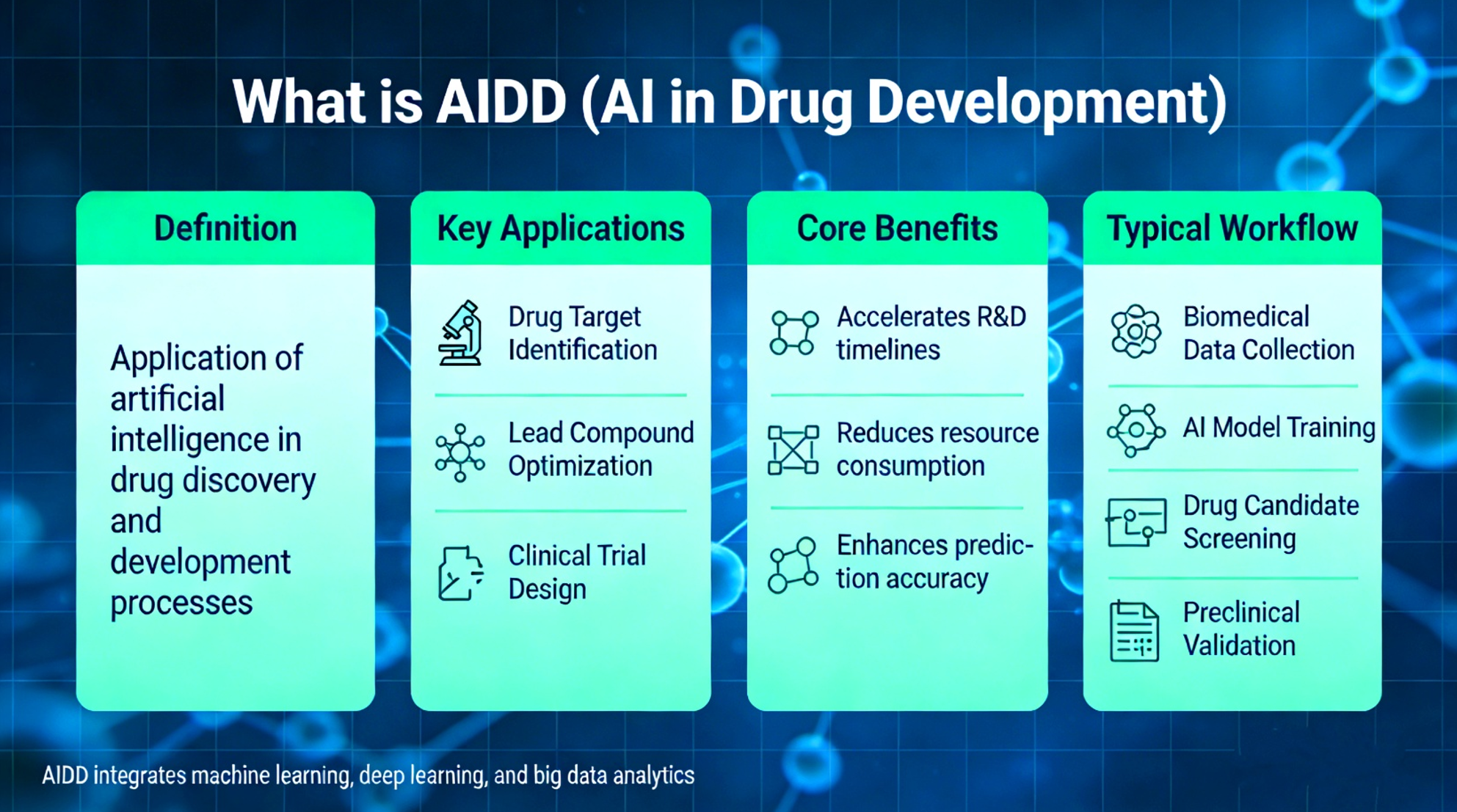 AIDD彻底改变了传统的 “发现 — 筛选 — 试错” 模式。传统方式依赖于大量的实验时间和研发周期,并且具有很高的失败率。而AIDD推动行业走向一个更加理性的流程:“理解 — 建模 — 设计 — 验证 — 迭代”。这种方式允许我们在更早阶段识别失败的可能性,使得失败成本更低、更容易解释,同时也提高了早期成功的几率并大幅缩短了研发时间。特别是在癌症或阿尔茨海默病等复杂疾病的治疗中,AIDD能够围绕那些被反复验证但总是失败的“问题靶点”,通过计算模拟优先筛选出从未合成过但从机制上看更有潜力的候选药物。