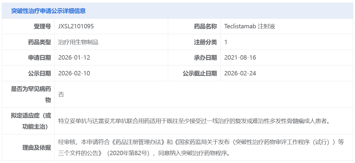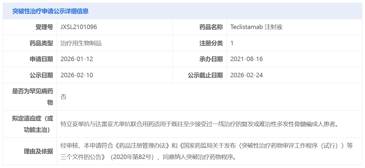 强生的Teclistamab 注射液获CDE拟纳入突破性治疗品种