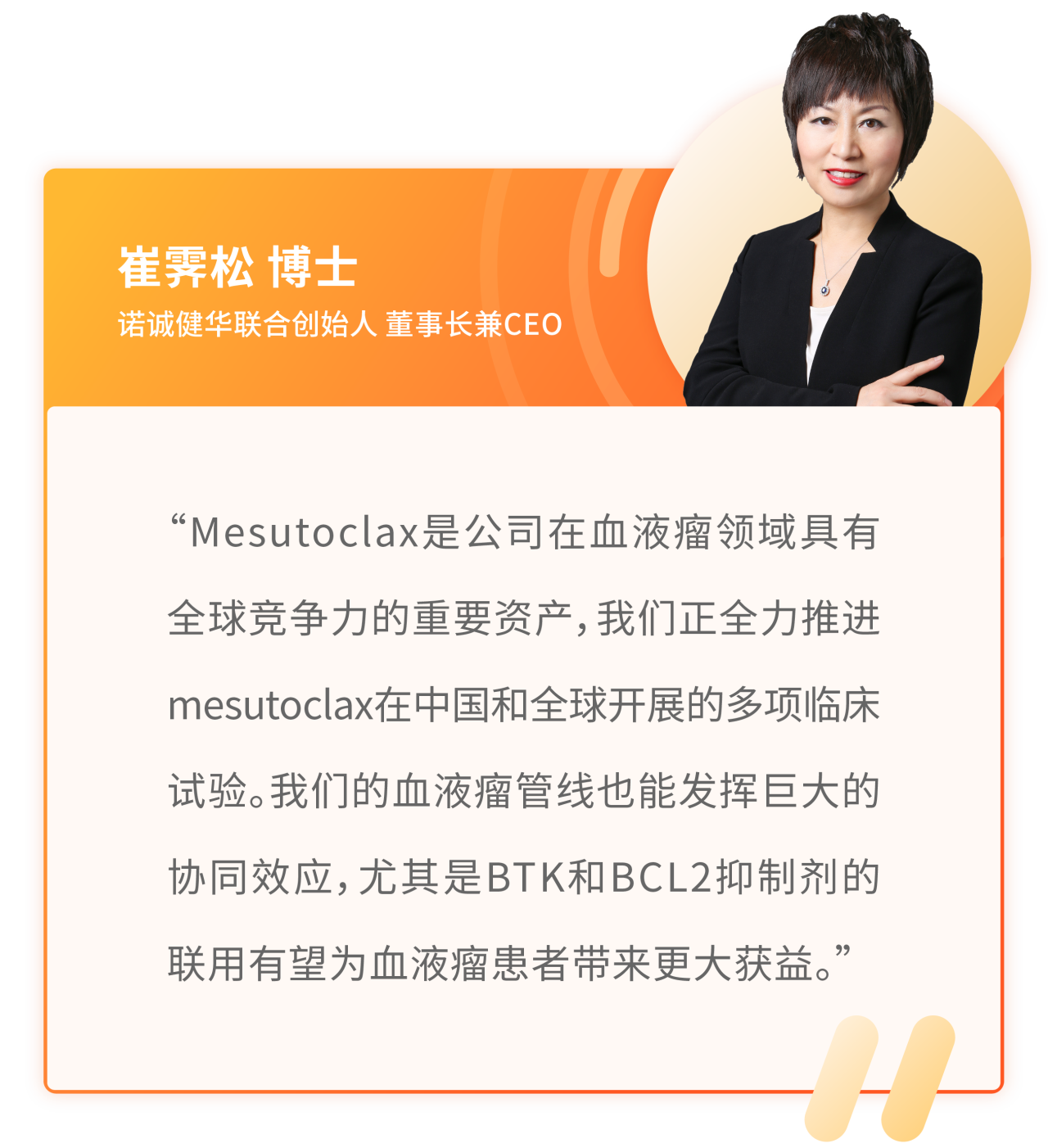 除了一线治疗CLL/SLL,mesutoclax正加速推进治疗BTK抑制剂耐药后的套细胞淋巴瘤的注册临床试验,并获得中国首个突破性疗法认定。此外,mesutoclax治疗急性髓系白血病(AML)和骨髓增生异常综合症(MDS)的临床研究正在中国和全球推进。