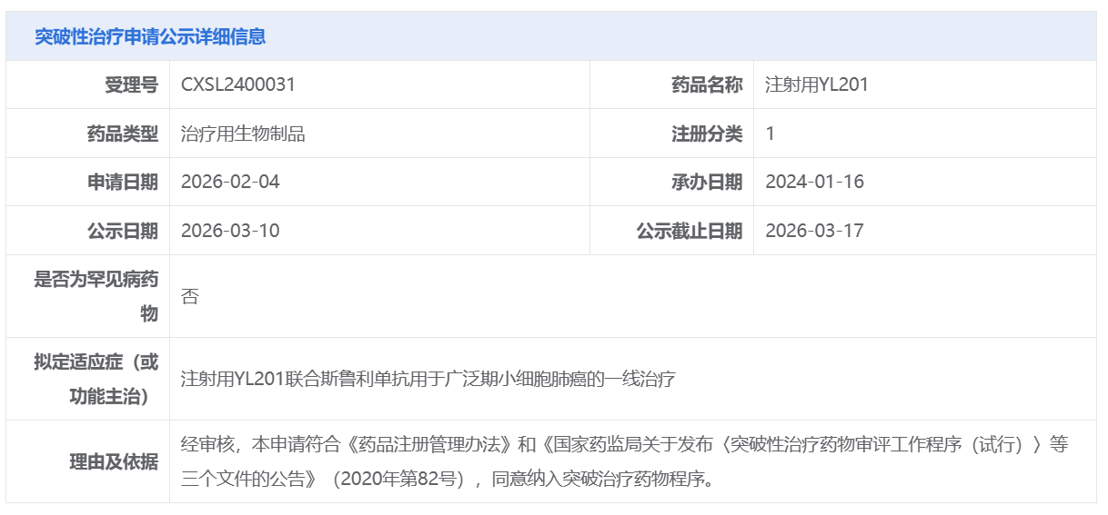 宜联生物注射用YL201获CDE拟纳入突破性治疗品种