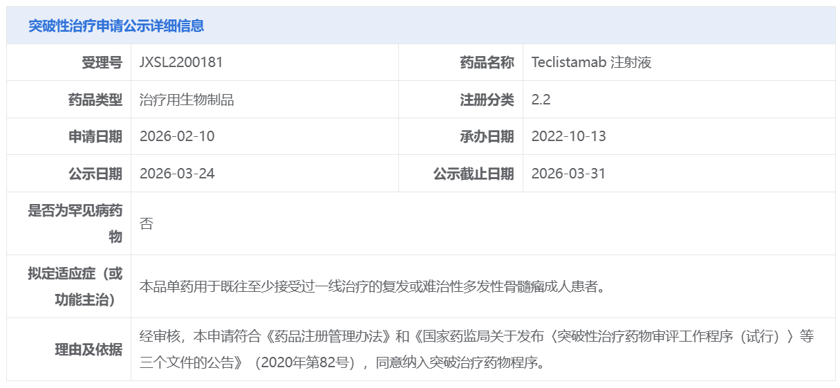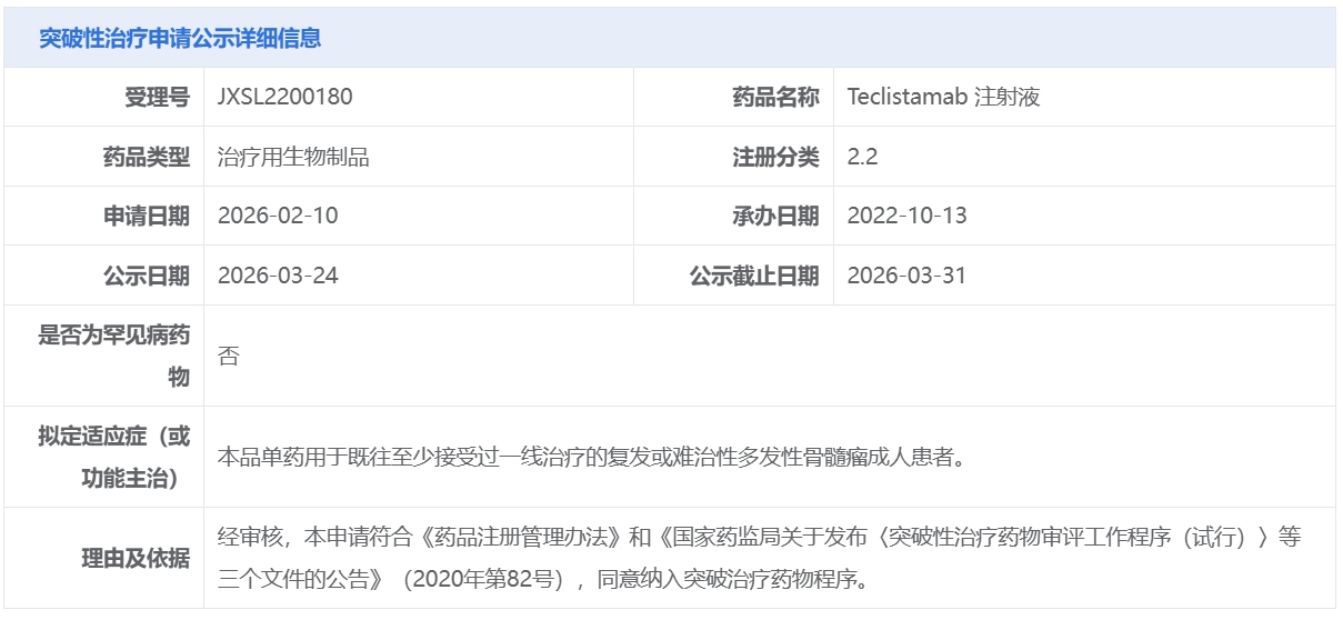 强生的Teclistamab 注射液获CDE拟纳入突破性治疗品种